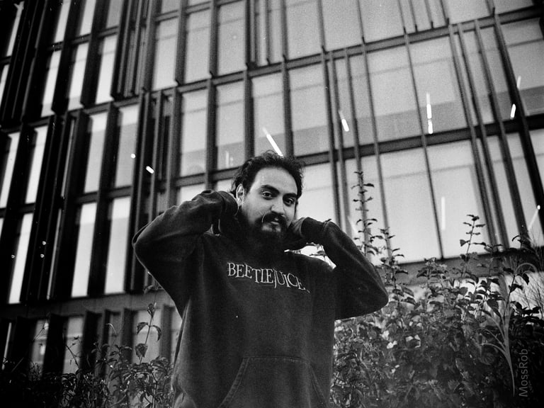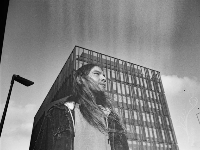 Retratos del líder de la banda Post Saudade antes de su primera presentación en vivo. Zenza Bronica ETRS 50mm 2.8 + Ilford XP2 Super 400