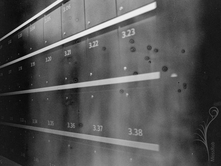 Ejemplo de una imagen dañada por rayos X. Ilford Pan 400