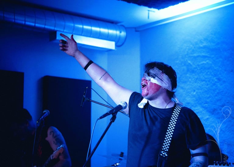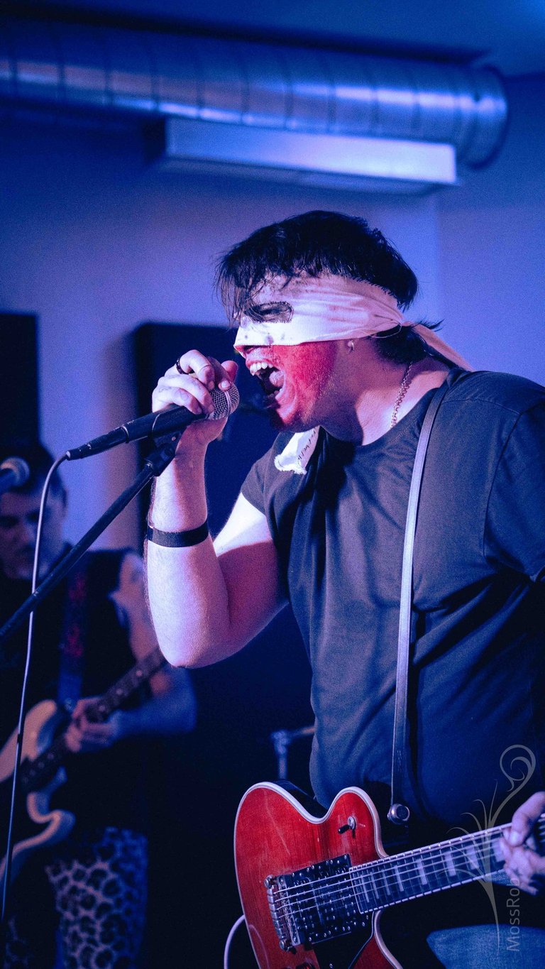 Si no supiera editar fotografías apropiadamente, entraría en pánico inmediatamente después de haber pasado las fotografías a mi computadora. El vocalista llevaba la cara pintada de rojo, la única fuente de iluminación era azul, no hace falta ser una eminencia en la teoría del color para darse cuenta de que su cara aparecería negra en todas las fotografías.
