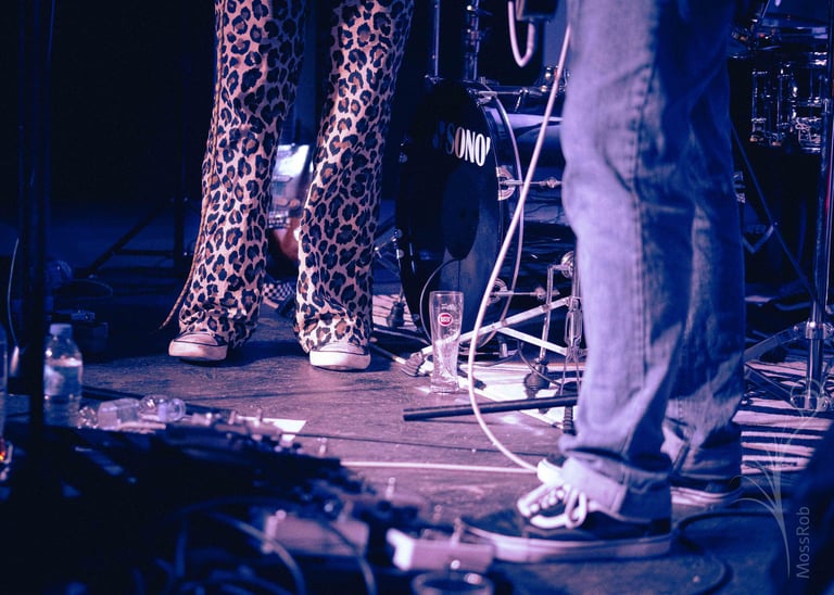 El único objetivo que tengo capaz de tolerar una iluminación baja y con una velocidad de enfoque confiable es un 50mm f/1.8 de Sony, el que, para las cortas distancias del recinto, me daba encuadres demasiado cerrados. Si quería una toma en donde apareciera toda la banda en su desplante, debía atravesar todo el público que disfrutaba enloquecido las canciones de la banda.